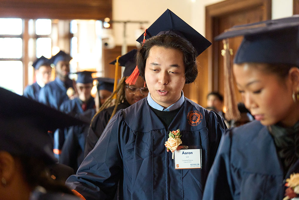 “In high school, I received a letter that said I’d been selected to be a Kessler Scholar. There was nothing on the Syracuse University website yet about being Kessler Scholars because we were the inaugural class. My first encounter with Kessler was the summer before my freshman year and the cohort all met each other online. I was nervous going into college. That first Zoom made it all a little bit easier. Then, when we had our first group meeting after school started, and I remember being really excited because it was nice having a community, being able to say, “oh, I know her” or “I know him.” My best friend right now, I met her at that first Zoom.”